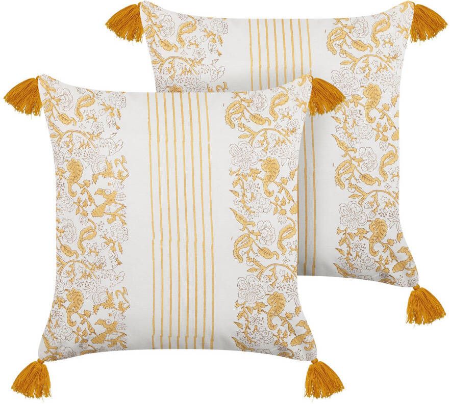 Het prachtige bloemenpatroon met geometrische strepen en decoratieve franjes zorgen ervoor dat deze kussens echte blikvangers zijn. Gemaakt van duurzaam katoen met zachte en dikke vulling perfect voor op de bank of op je bed. Combineer met anderen k Bestel Beliani BILOBA Sierkussen geel online bij fonQ. Alle Beliani Sierkussens uit voorraad leverbaar. Vandaag besteld, uiterlijk 17 maart in huis.