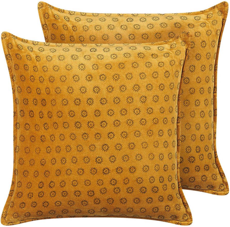 De kussens hebben een blokdruk patroon op de voorkant w Bestel Beliani RAPIS Set van 2 kussens geel online bij vtwonen. Voor 23:00 besteld, morgen in huis.Beliani Rapis Sierkussen geel fluweel