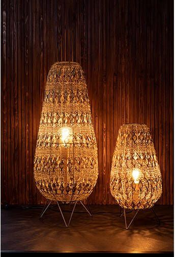 Een vleugje 1001-nacht, gecombineerd met macramé-kunsten en dan uitgevoerd in dun metaaldraad. Dat is tafellamp Filo van Dutchbone. Een tafellamp met een Oosters sfeertje. Deze tafellamp is met de hand geknoopt van messingkleurig metaaldraad. De Filo lamp is verkrijgbaar in drie maten. De grootste zou ook een vloerlamp kunnen zijn. Tip: Kijk ook eens naar de andere Filo producten van Dutchbone. ● Deze tafellamp is met de hand gevlochten van metaaldraad. ● Deze lamp is er in verschillende maten. ● Filo tafellamp is onderdeel van de Filo serie met meer woonproducten.