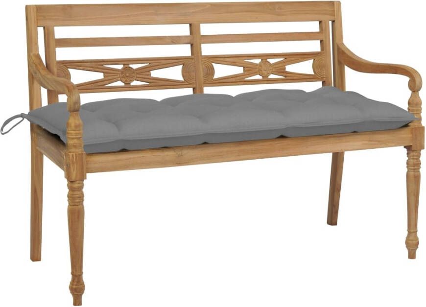 VidaXL Bank Batavia Met Grijs Kussen 120 Cm Massief Teakhout