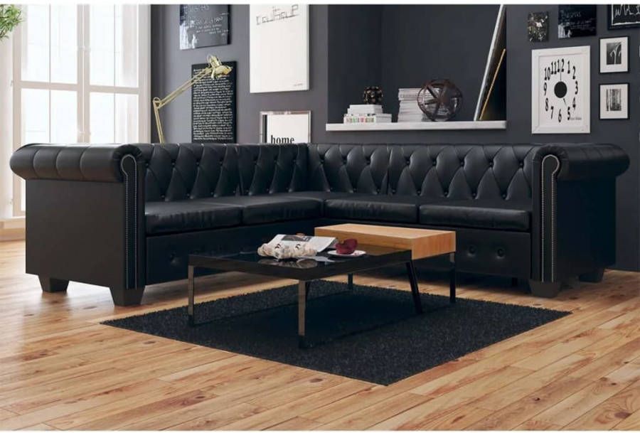 vidaXL Hoekbank 5 zits Chesterfield stijl kunstleer zwart