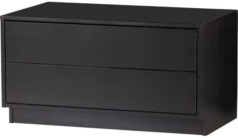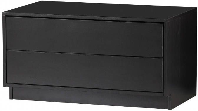 - Stijlvolle meubelserie in diep zwart Met modern push-to-open systeem Gemaakt van massief grenenhout H 40 cm x B 75 cm x D 40 cm Stijlvol, tijdloos en modern. Dat zijn de tekenende kernwoorden van meubelserie Finca. De Finca serie komt uit collectie van het Nederlandse interieurlabel WOOOD en is gemaakt van natuurlijk grenenhout. De Finca items zijn afgewerkt in een matte coating met een diep zwarte kleur. Het strakke lijnenspel van de Finca meubelen wordt niet onderbroken door handgrepen, met een modern push-to-open systeem zijn de deuren en laden geluidloos te openen en sluiten. Het Finca tv meubel met een breedte van 75 cm, is de tussenmaat van de drie tv meubelvarianten. De tv meubelen hebben een hoogte van 40 cm en een diepte van 39,5 cm. Hierdoor zijn de drie varianten goed te combineren en stel je eenvoudig een tv meubel samen op jouw gewenste formaat. Het tv meubel heeft twee ruime laden met elk een inhoud van 11,5x68x30 cm (hxbxd). De onderrand van het Finca tv meubel laat aan de voorzijde 7 cm ruimte, hierdoor lijkt het alsof het tv meubel zweeft. Iedere lade heeft een draagkracht van maximaal 10 kg wanneer het gewicht gelijkwaardig verspreid is. Elk meubel uit de Finca meubel serie wordt geleverd als eenvoudig bouwpakket met een duidelijke montage instructie. Het schuiven van het meubel kan zorgen voor krassen op harde vloeren, plaats ter bescherming viltglijders aan de onderzijde.